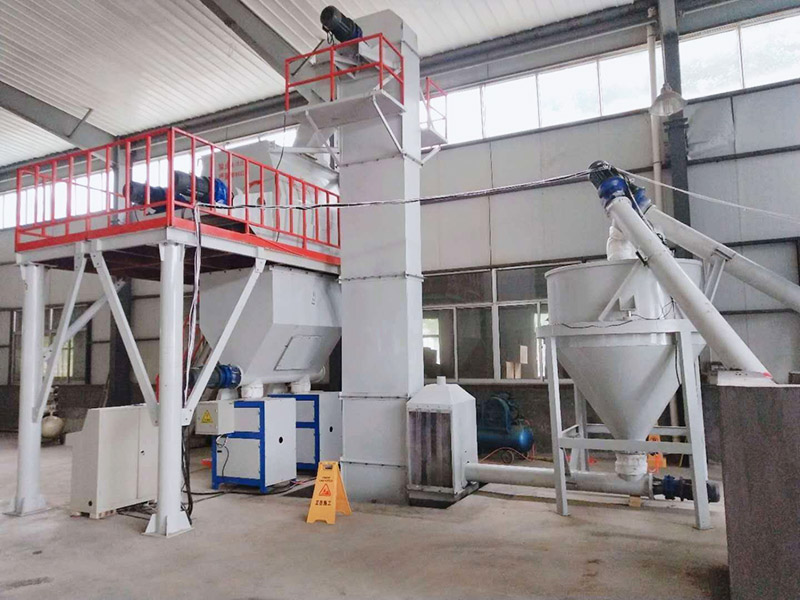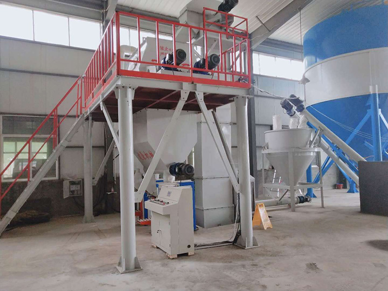 简易型、半自动型、全自动型三种。简易型主要由无重力混合机、干粉料仓、包装螺旋等构成。该生产线投资少,见效快,但产量低,且人工消耗特别大,工作环境含尘量较高,适合投资初期购买。半自动型主要由无重力混合机、成品料仓、包装机、斗式提升机、待混仓、除尘器、空压系统、控制系统等构成。该生产线投资较简易型较大,但产量高、工作环境好,且可拓展性好,适合大部分投资人士选购。全自动型主要由混合系统、储料系统、输送系统、提升系统、称量系统、待混系统、包装系统、除尘系统、料位控制系统、报警系统、空压系统、整机控制系统等构成。商品砂匮乏的地区,可以增配破碎系统、筛分系统、烘干系统。该生产线投资大,一步到位,投资风险大,适合建在墙体保温基础较好的大中型城市。